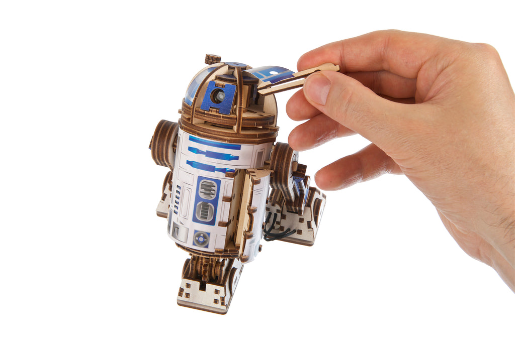 Rakenna oma uskollinen astromekkaniikkadroidisi Ugearsin Star Wars™ -kokoelman R2-D2™:sta. Pienikokoinen mutta täynnä persoonaa, tämä yksityiskohtainen ja väritetty 3D-puumalli vangitsee rakastetun droidin tunnistettavan ulkomuodon. R2-D2 on palvellut legendaarisia sankareita, kuten Anakin Skywalkeria, Padmé Amidalaa ja Luke Skywalkeria – ja nyt hän on valmis palvelemaan sinua. Varustettuna liikkuvilla jaloilla kahteen esillepanotilaan sekä toimivalla LED-projektorilla, joka heijastaa aitoja Star Wars -kuvia hänen “silmänsä” kautta, tämä malli tuo galaktista charmia mille tahansa hyllylle.