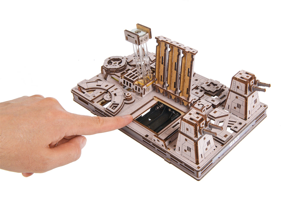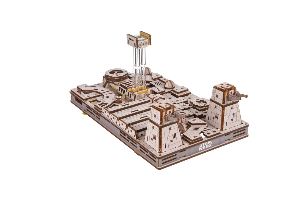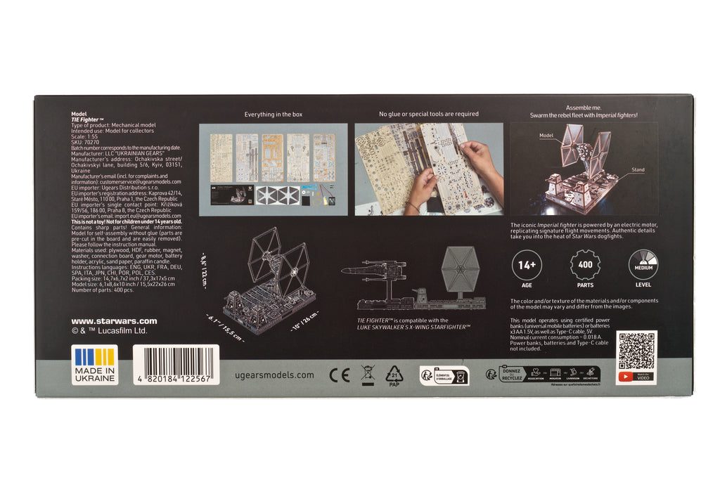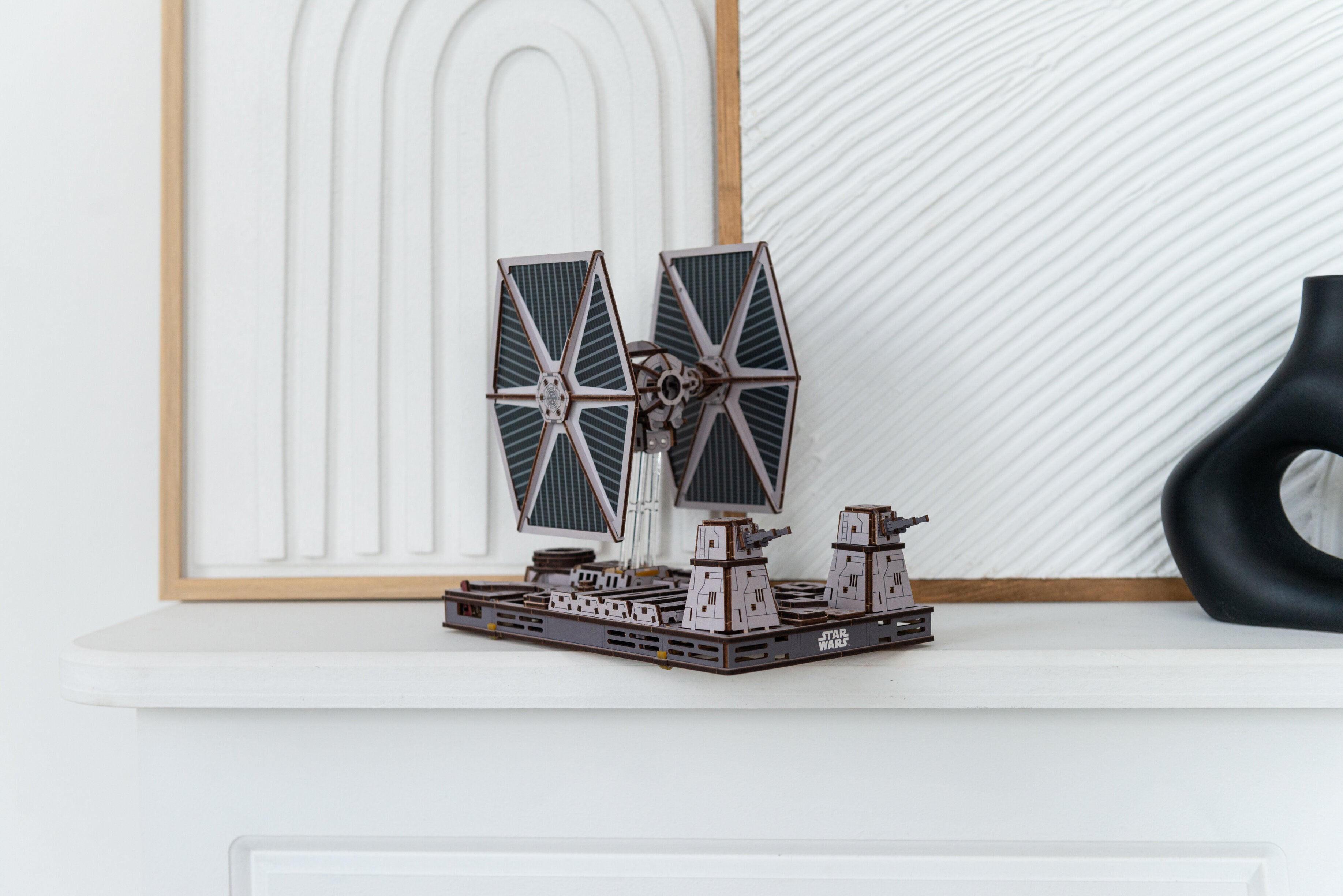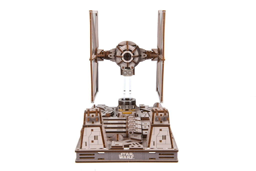 Tämä paristokäyttöinen DIY-malli, valmistettu värillisestä vanerista, sisältää sekä hävittäjän että Kuolemantähden pintaa muistuttavan telineen. Alus kiinnittyy telineeseen magneetilla, joten irrotus ja kiinnitys on helppoa. Telineeseen on piilotettu pieni paristokäyttöinen moottori, joka tuottaa realistista lentoliikehdintää. Kaksi laseritykkitornia liikkuu sivulta sivulle, luoden tulimyrskyn lähestyviä X-Wingejä vastaan. TIE Fighterin ohjaamon yläluukku avautuu paljastaen sisädetaljit. Siivissä on mukana kartonkiosia. Malli toimii joko kolmella AA-paristolla (ei sisälly) tai USB Type-C -liitännällä (powerbank ja kaapeli eivät sisälly).